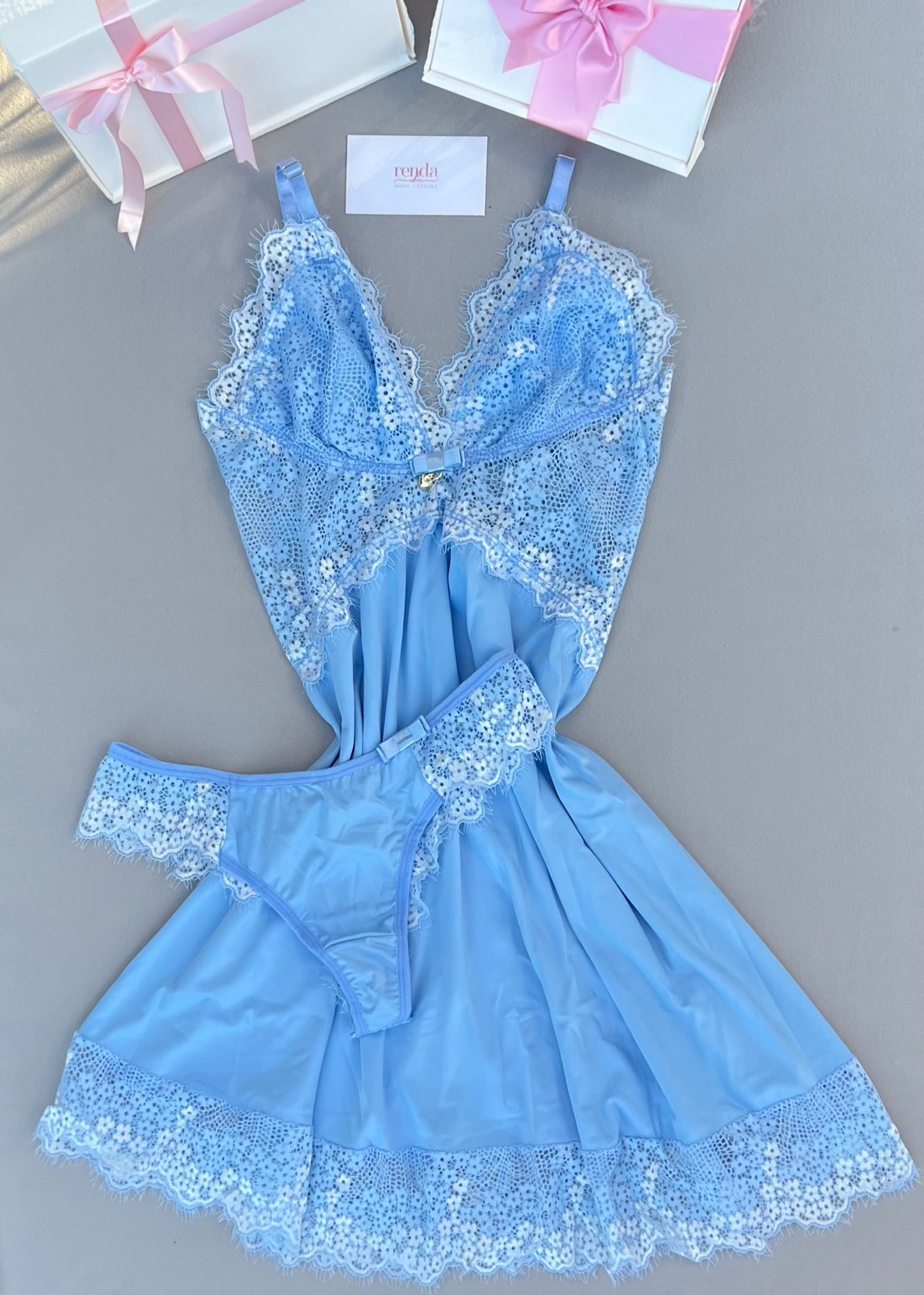 Conjunto de Camisola + Calcinha – Sky Blue and Off-White