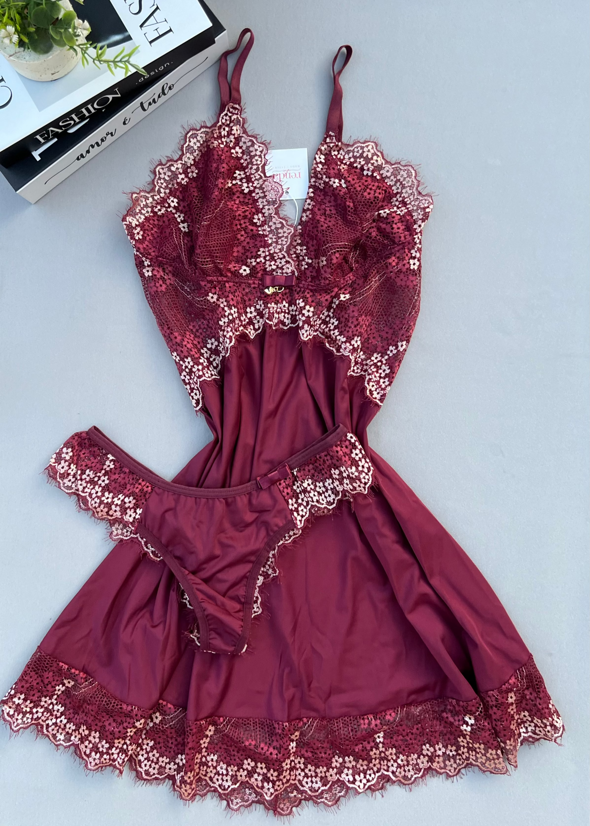 Conjunto de Camisola + Calcinha – Marsala and Nude