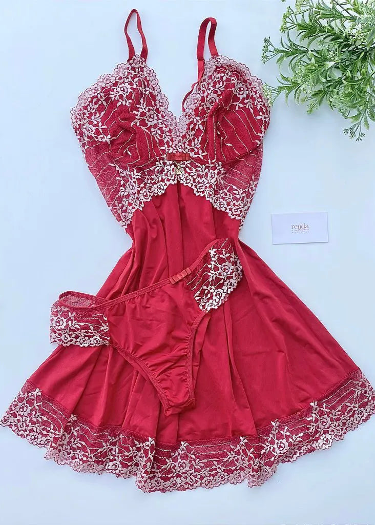 Conjunto de Camisola + Calcinha – Pepper Red and Off-White