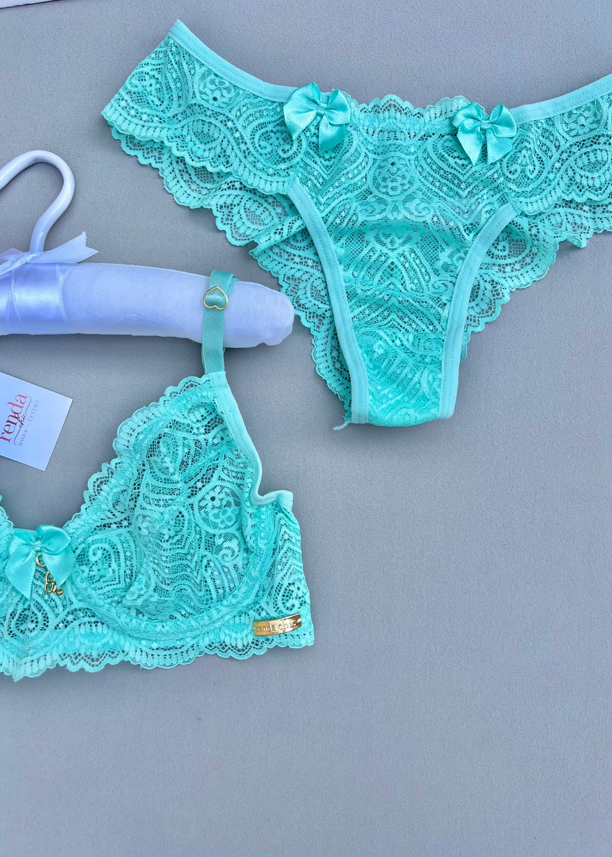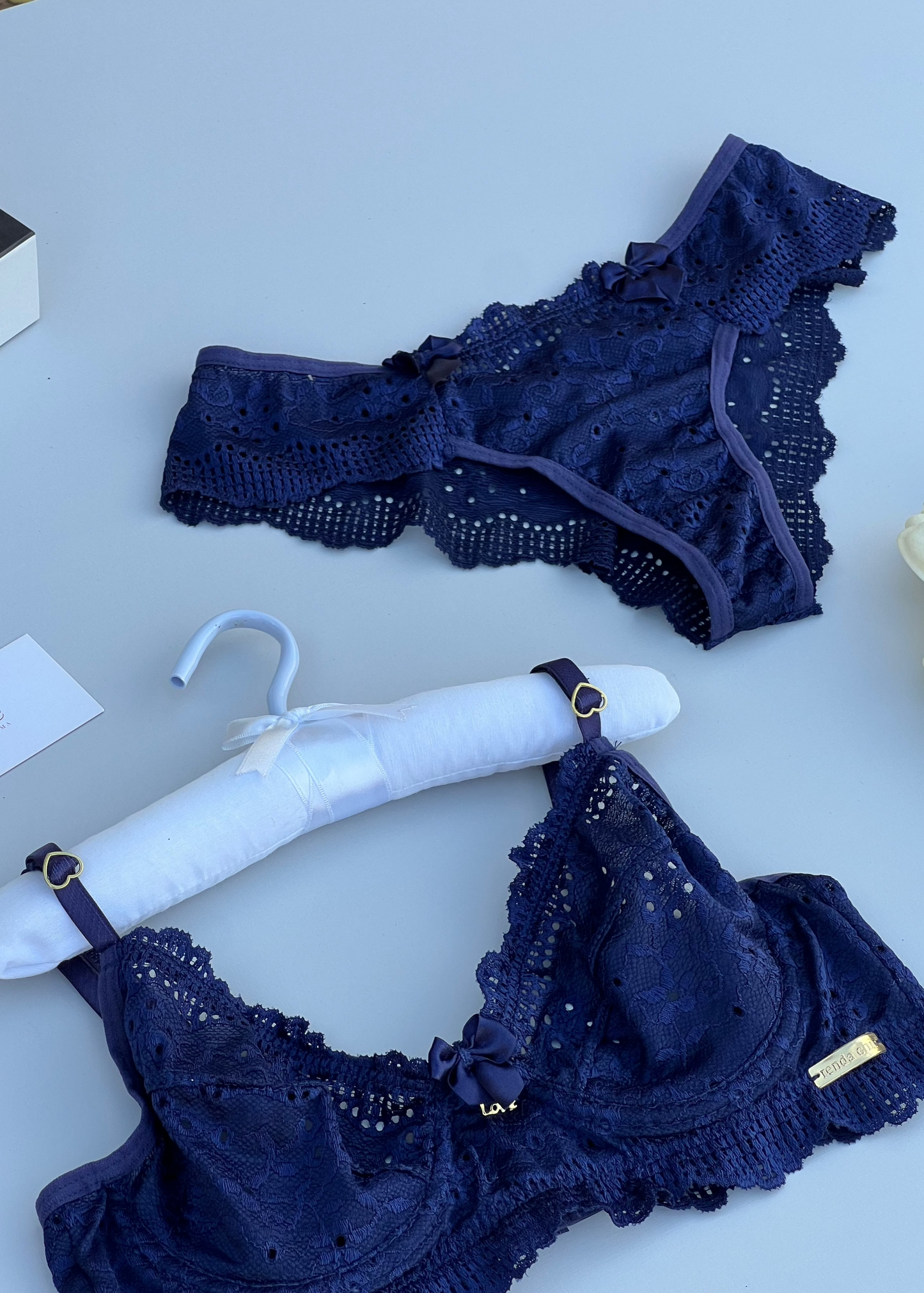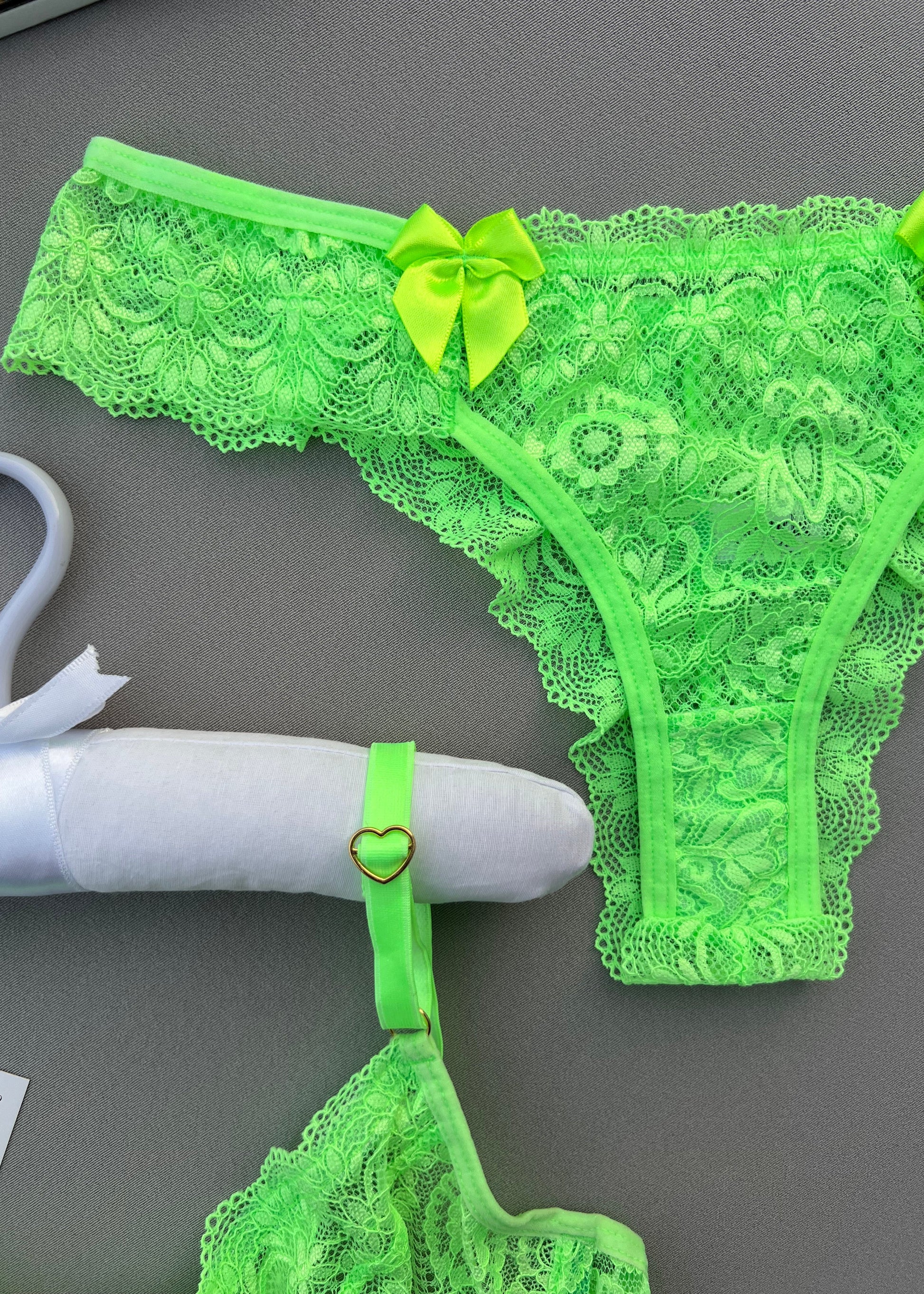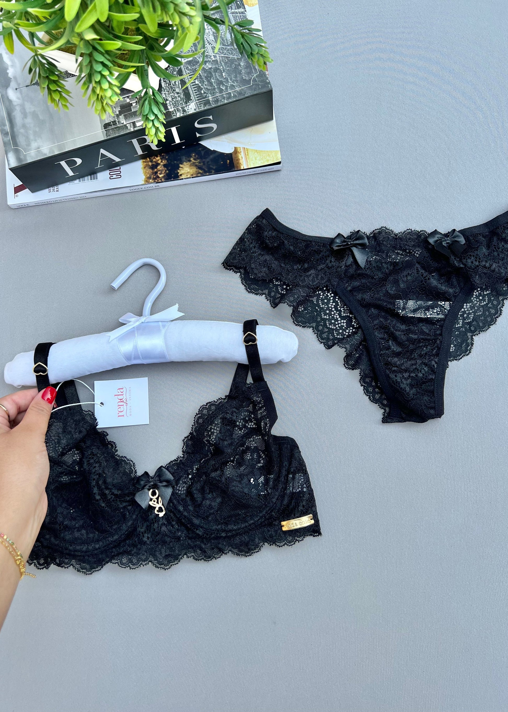 Conjunto Jolie Dentelle - Em renda, detalhe frontal com laço de cetim