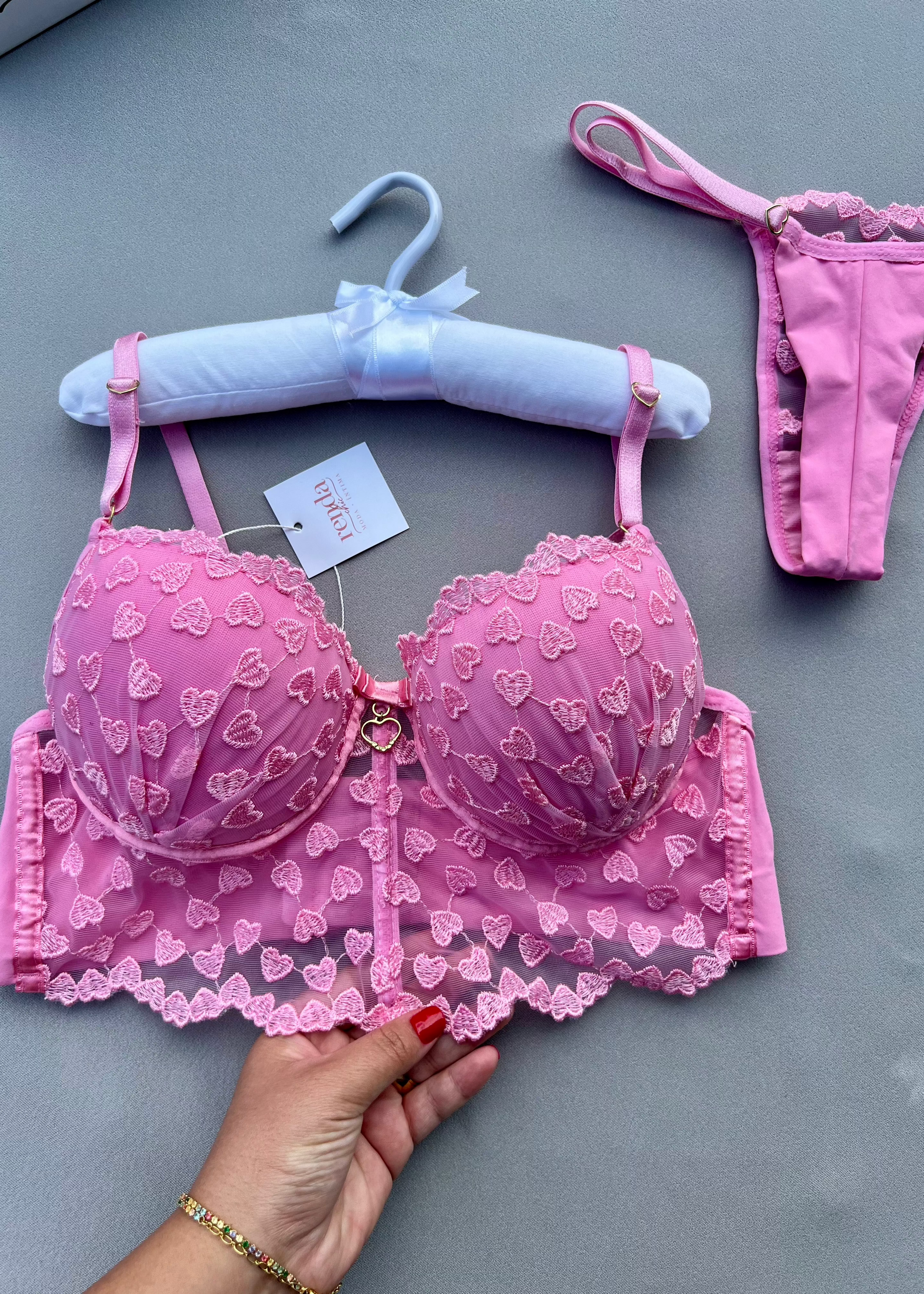 - Renda delicada com estampa de corações