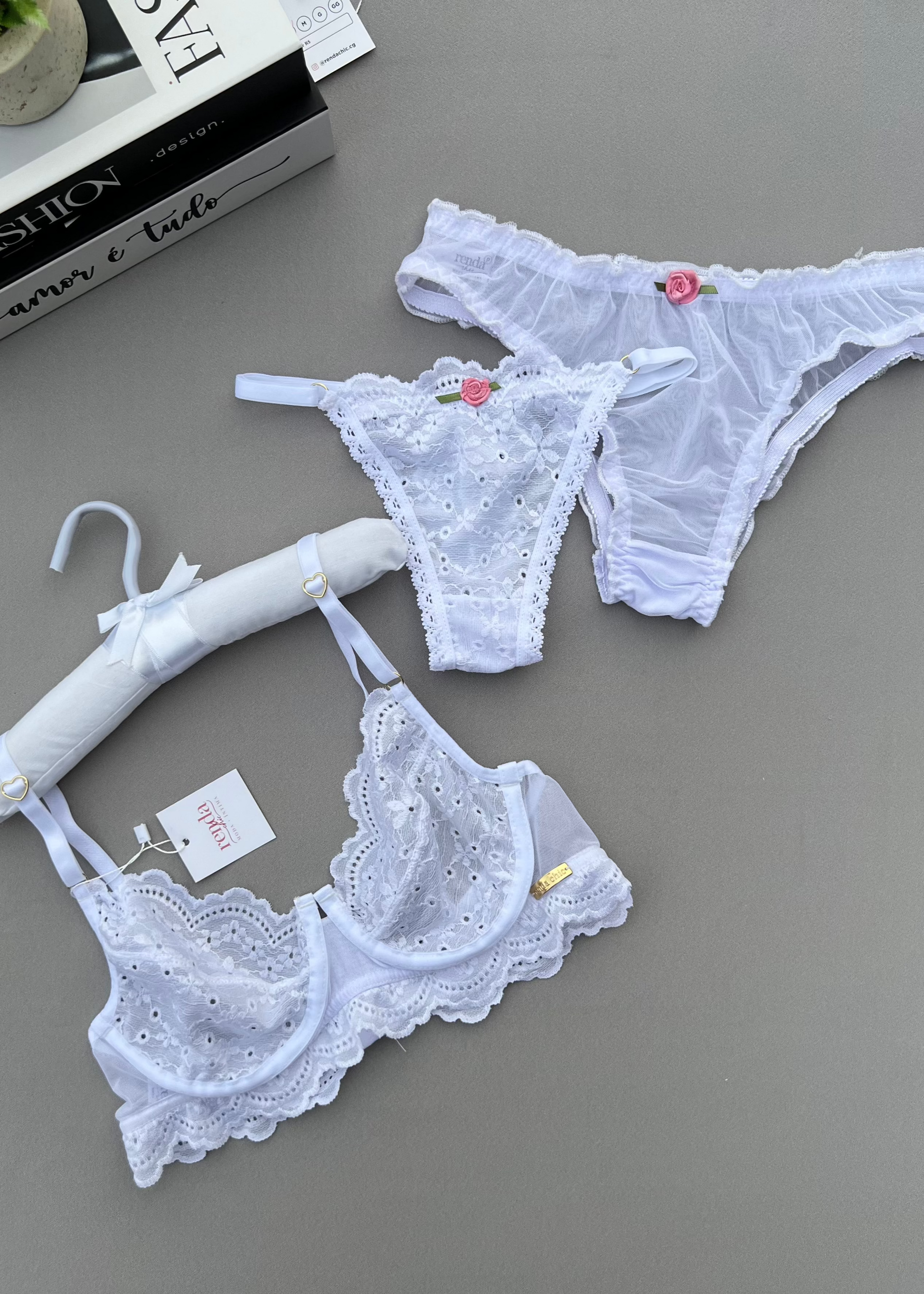 Conjunto Fleur de Grâce Blanc - Renda laise com duas calcinhas