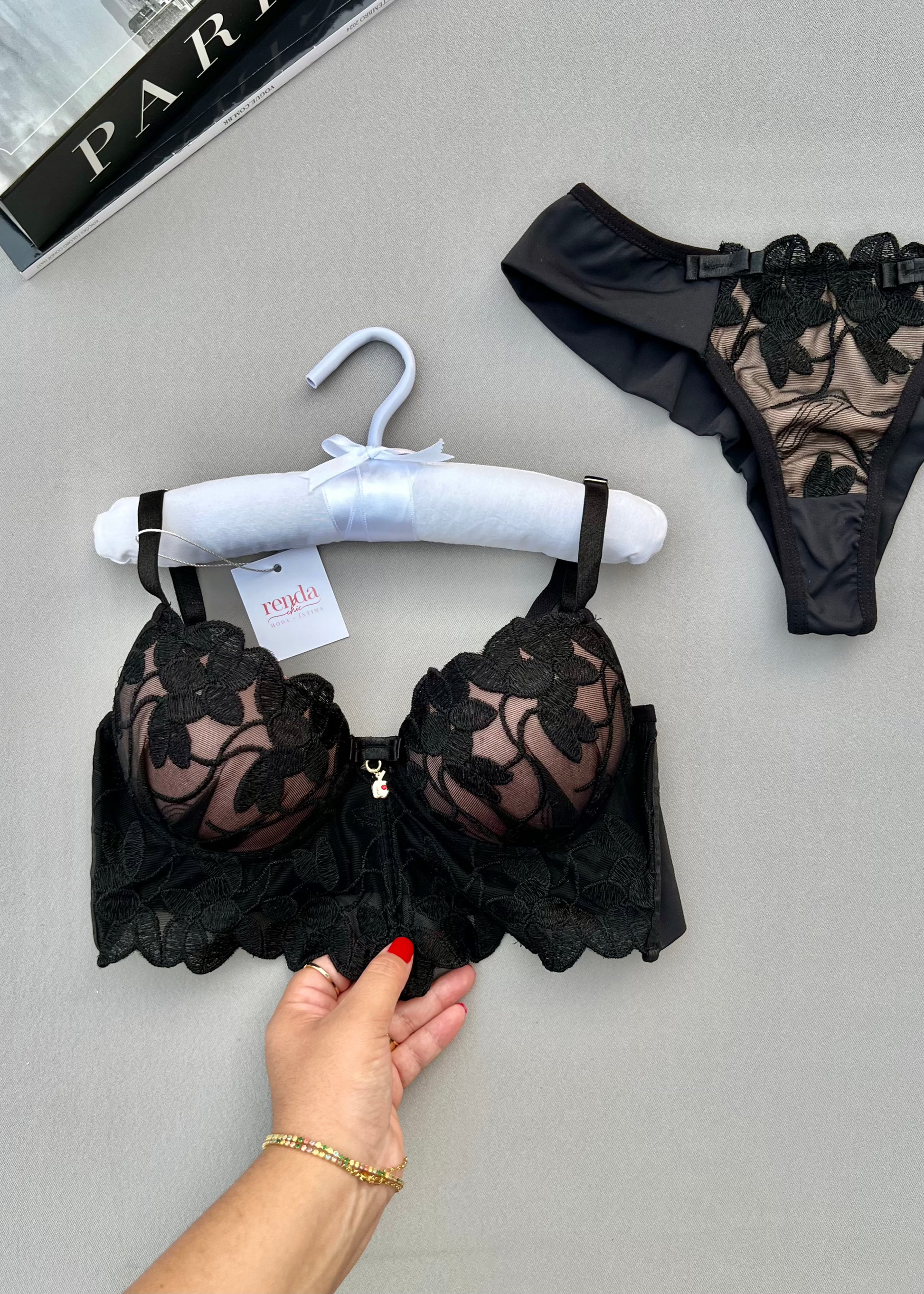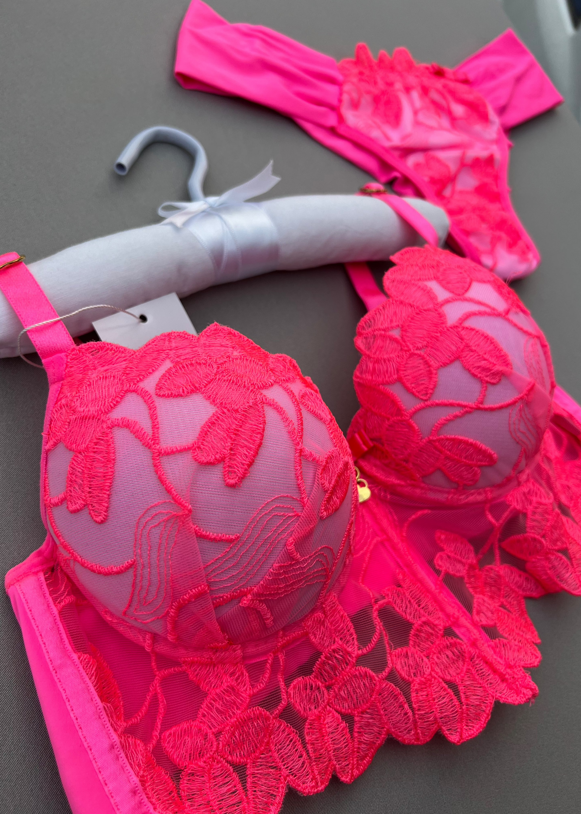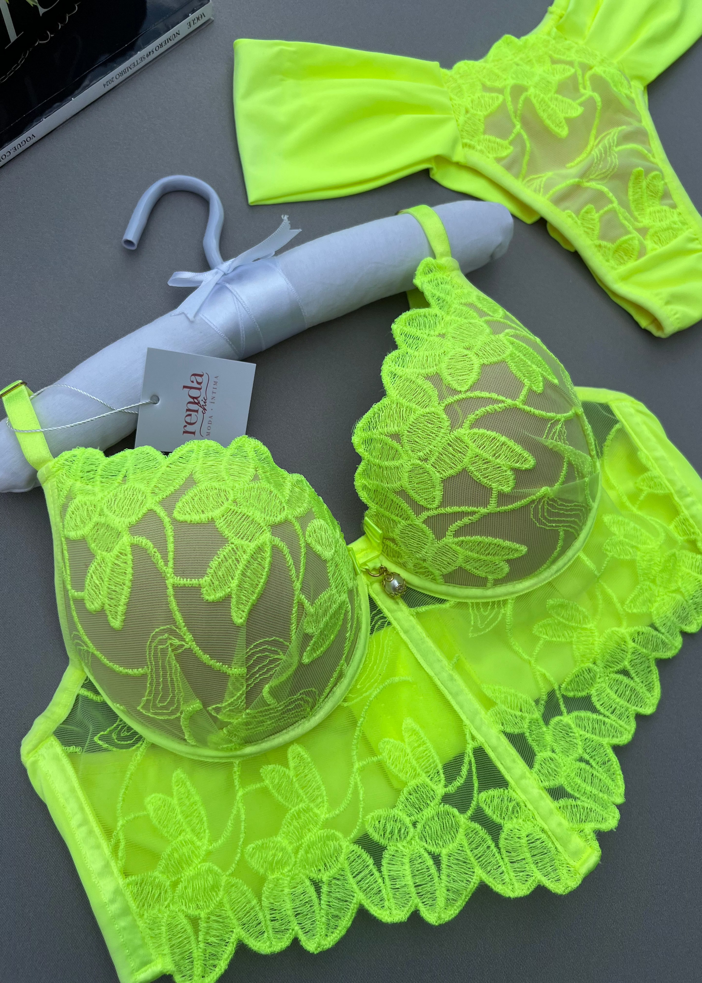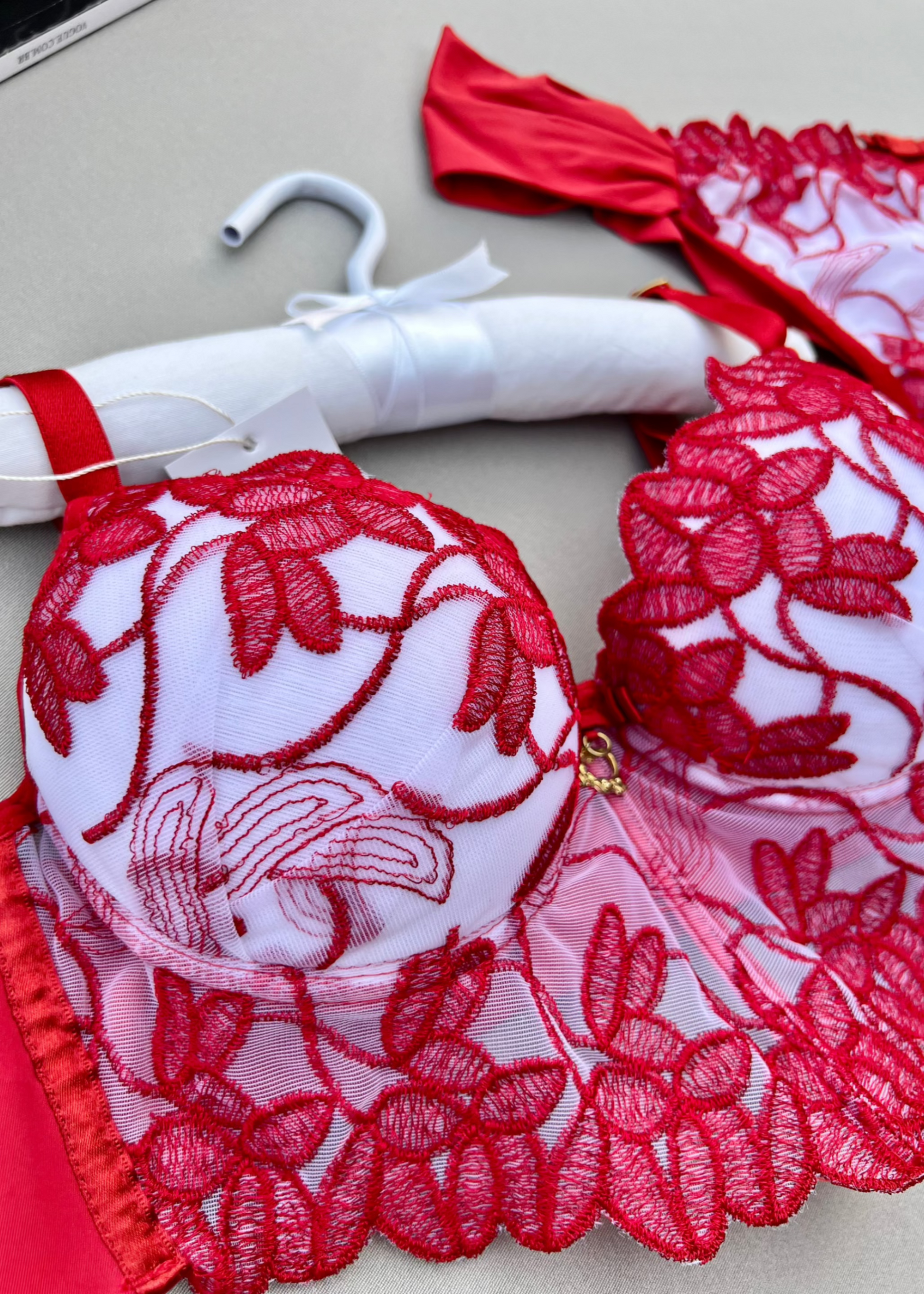 Com bojo, aro, estrutura com três hastes e aplicações em renda guipir, ele une design impecável à firmeza que valoriza cada curva com elegância.