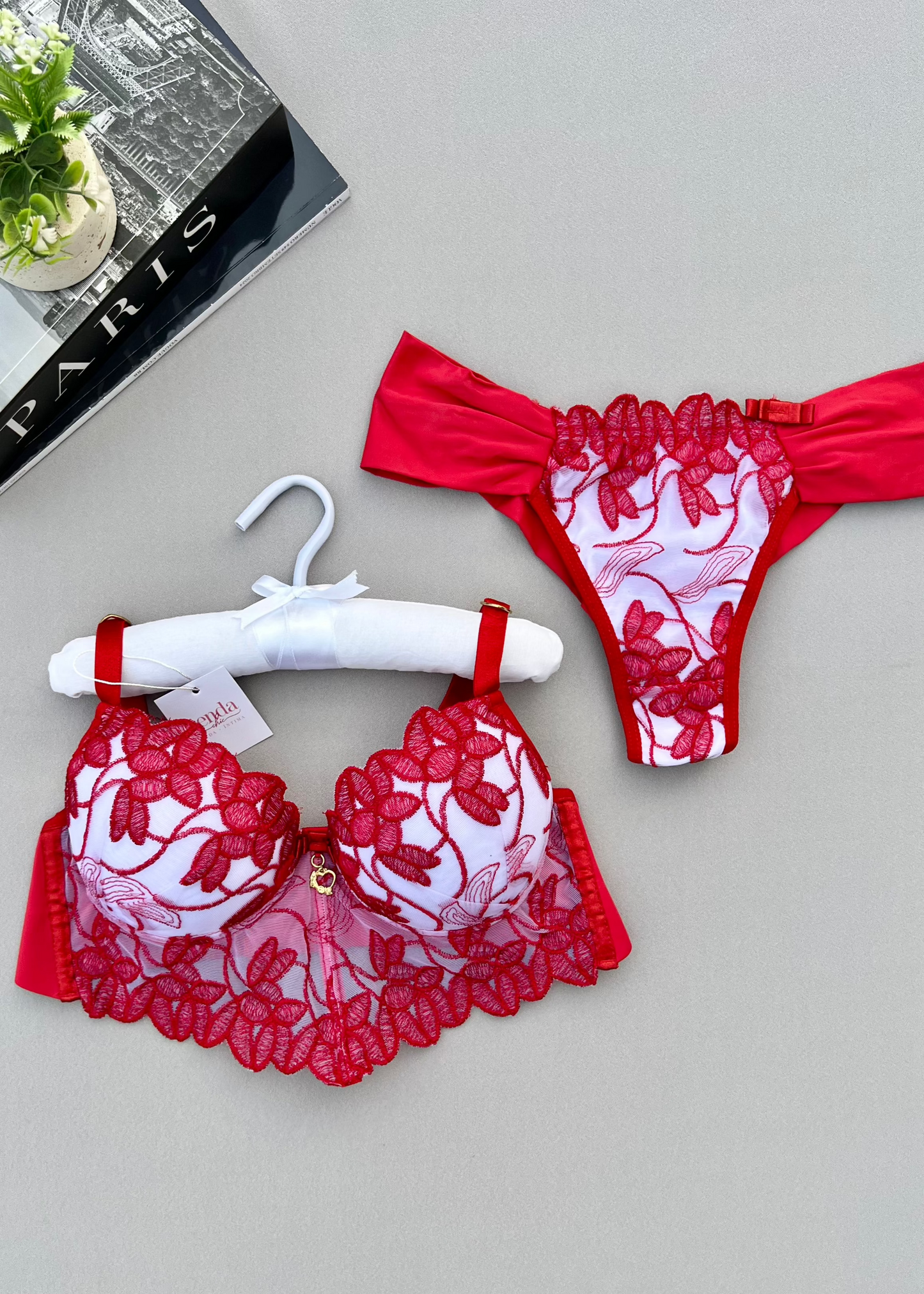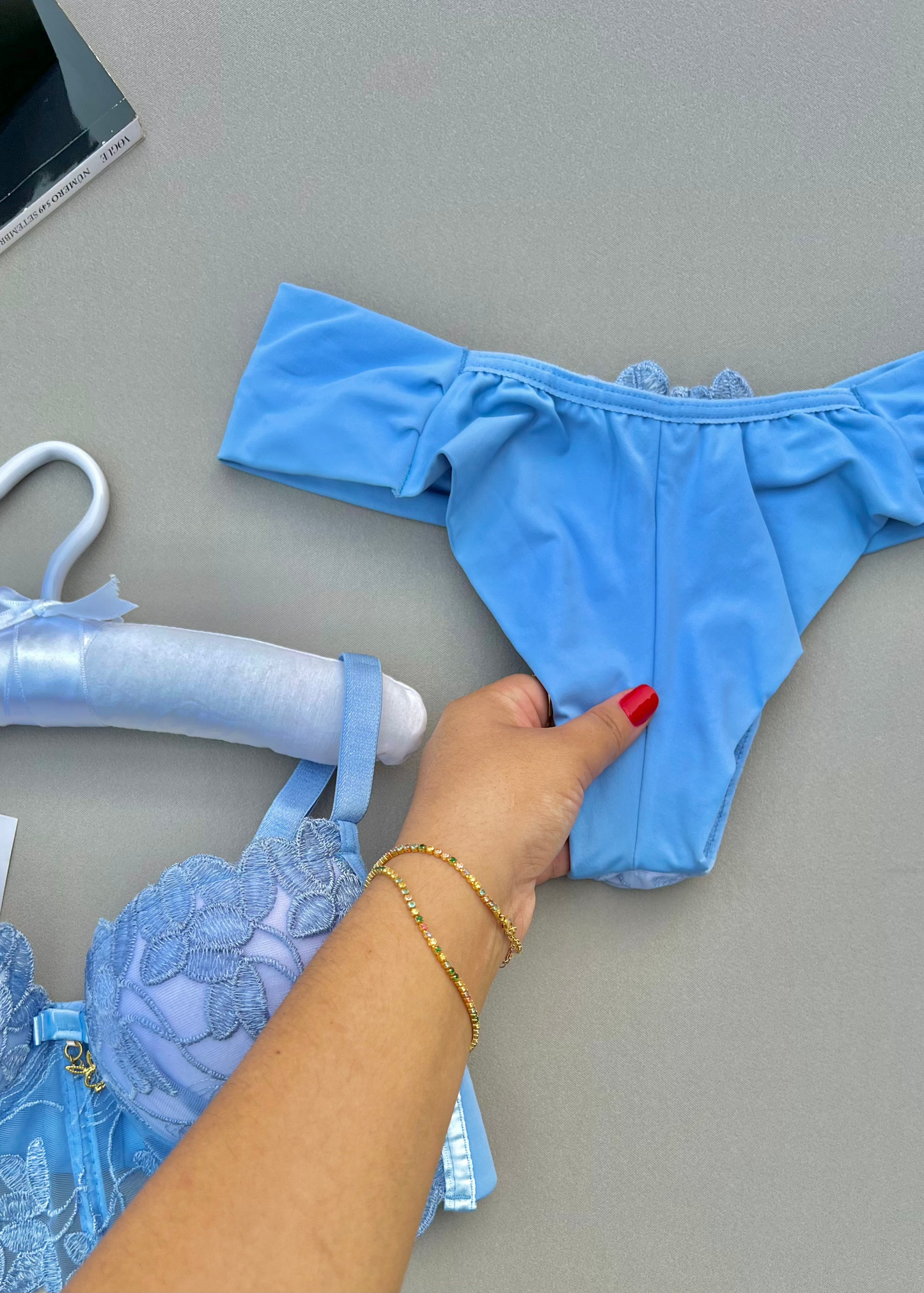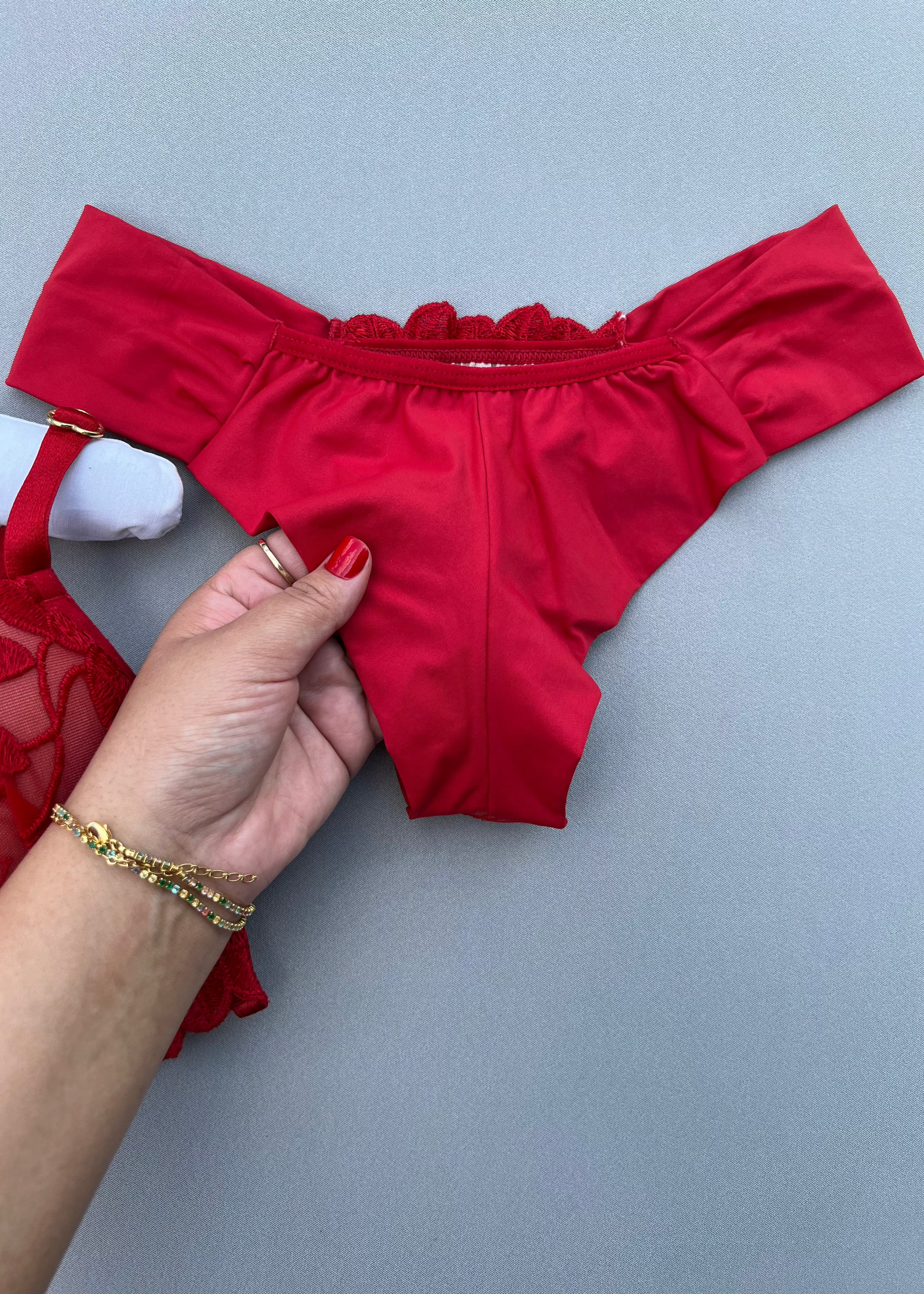 O sutiã oferece sustentação com conforto e presença. A calcinha semi fio traz sensualidade equilibrada, com forro 100% algodão e um toque de luxo discreto.