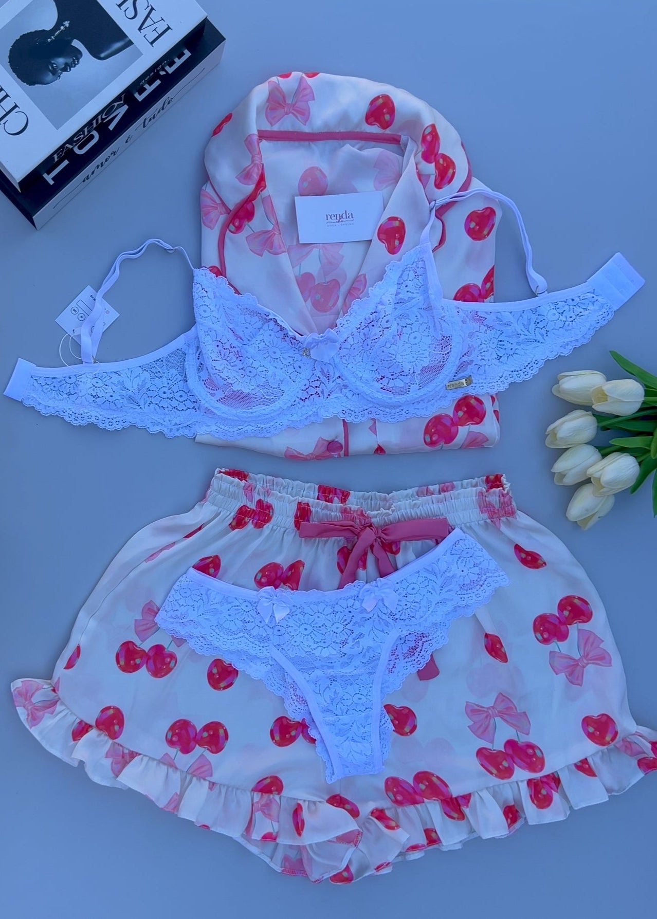 Édition Cerise Mignonne — Combo 4 peças: Conjunto de pijama curto + Conjunto Jolie Detelle