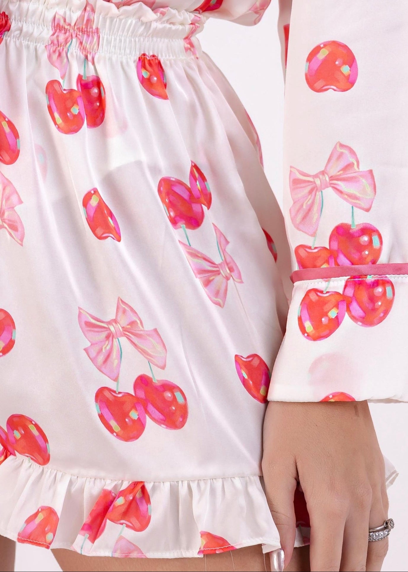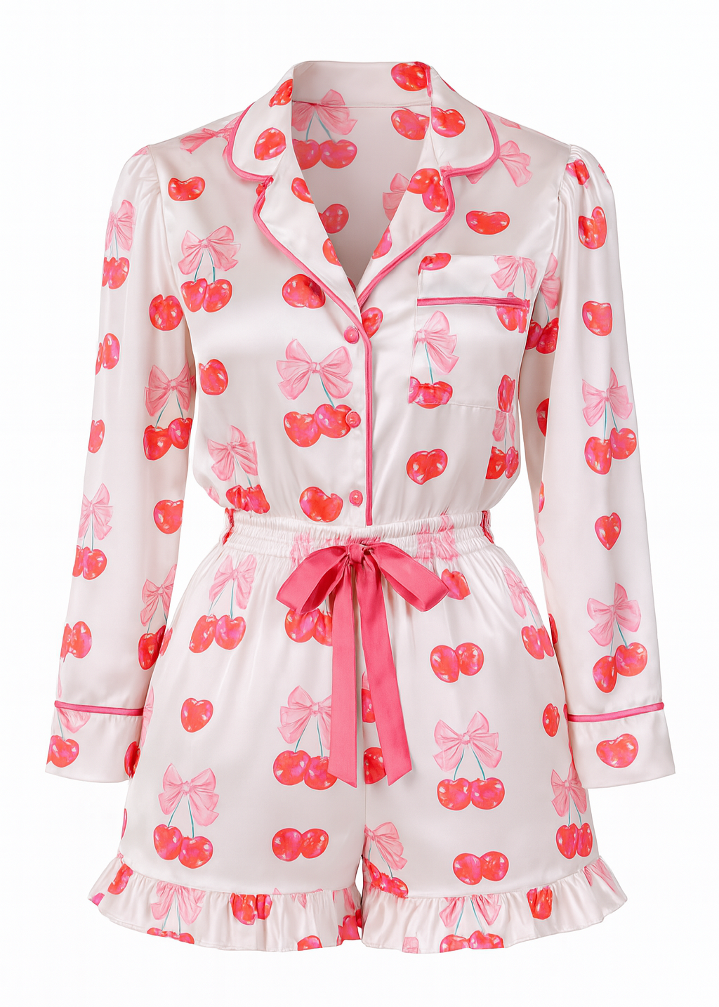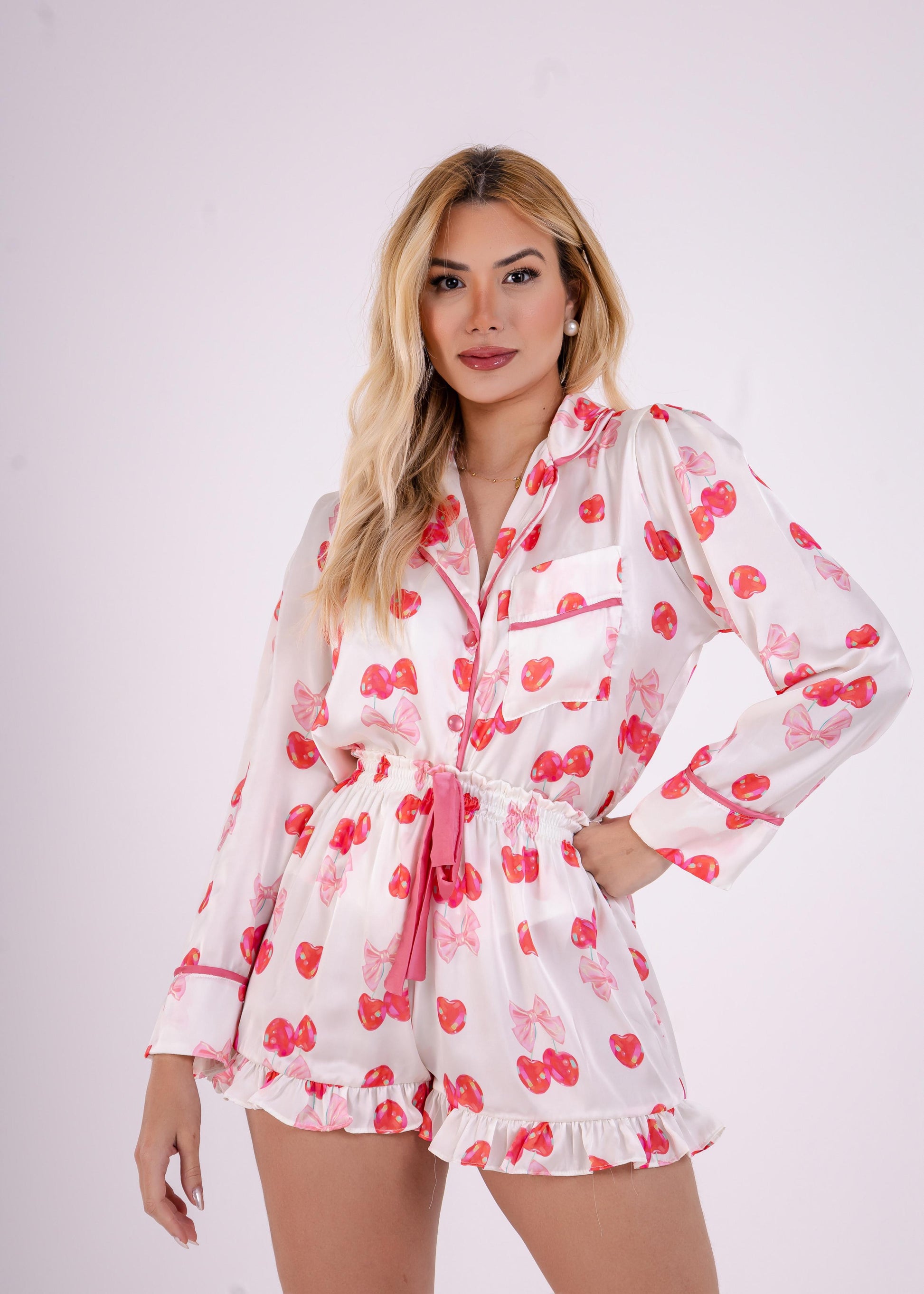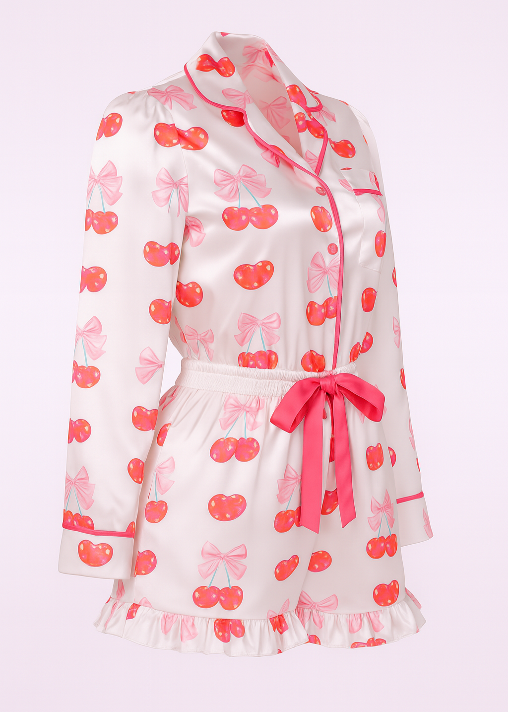 Édition Cerise Mignonne — Pijama Longo com Estampa Exclusiva e Babados