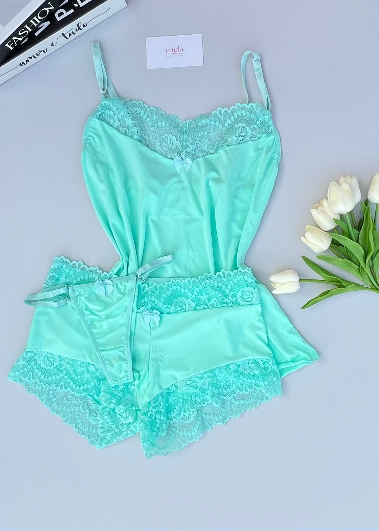 Édition Mint Green — Combo 5 peças: Conjunto de pijama curto + Conjunto Amour Champêtre