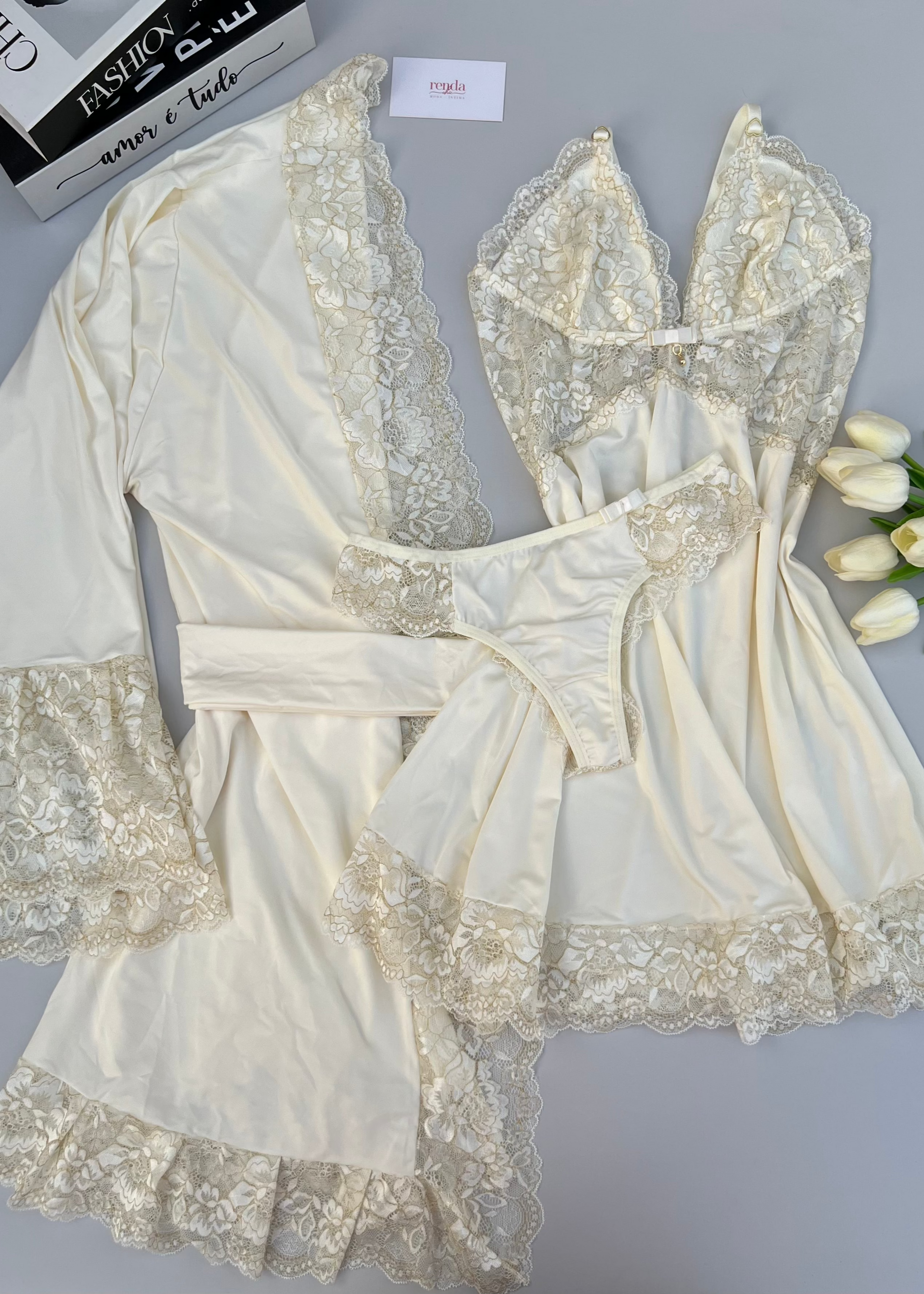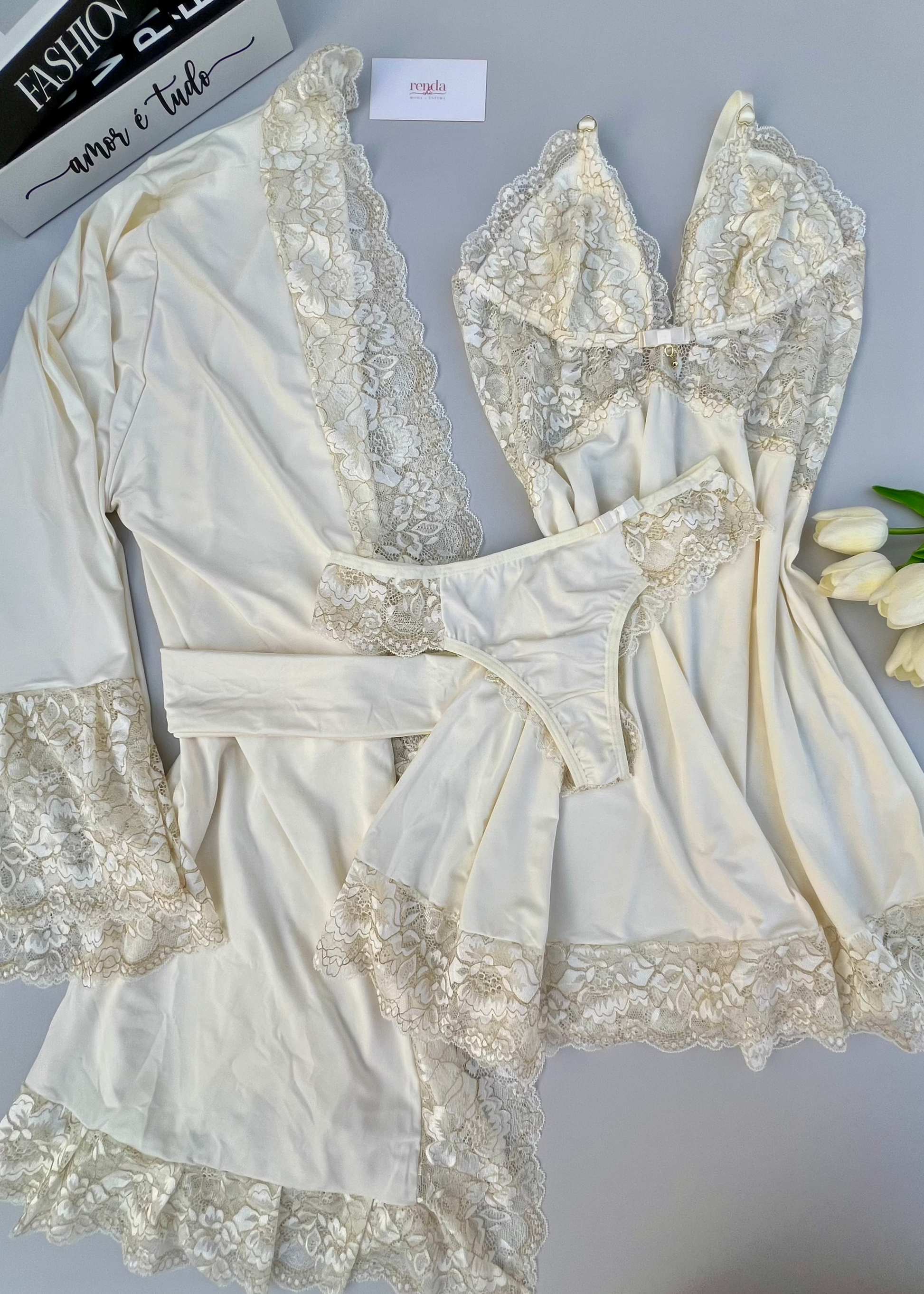 Kit Robe + Conjunto de Camisola + Calcinha - Lune d’Ivoire