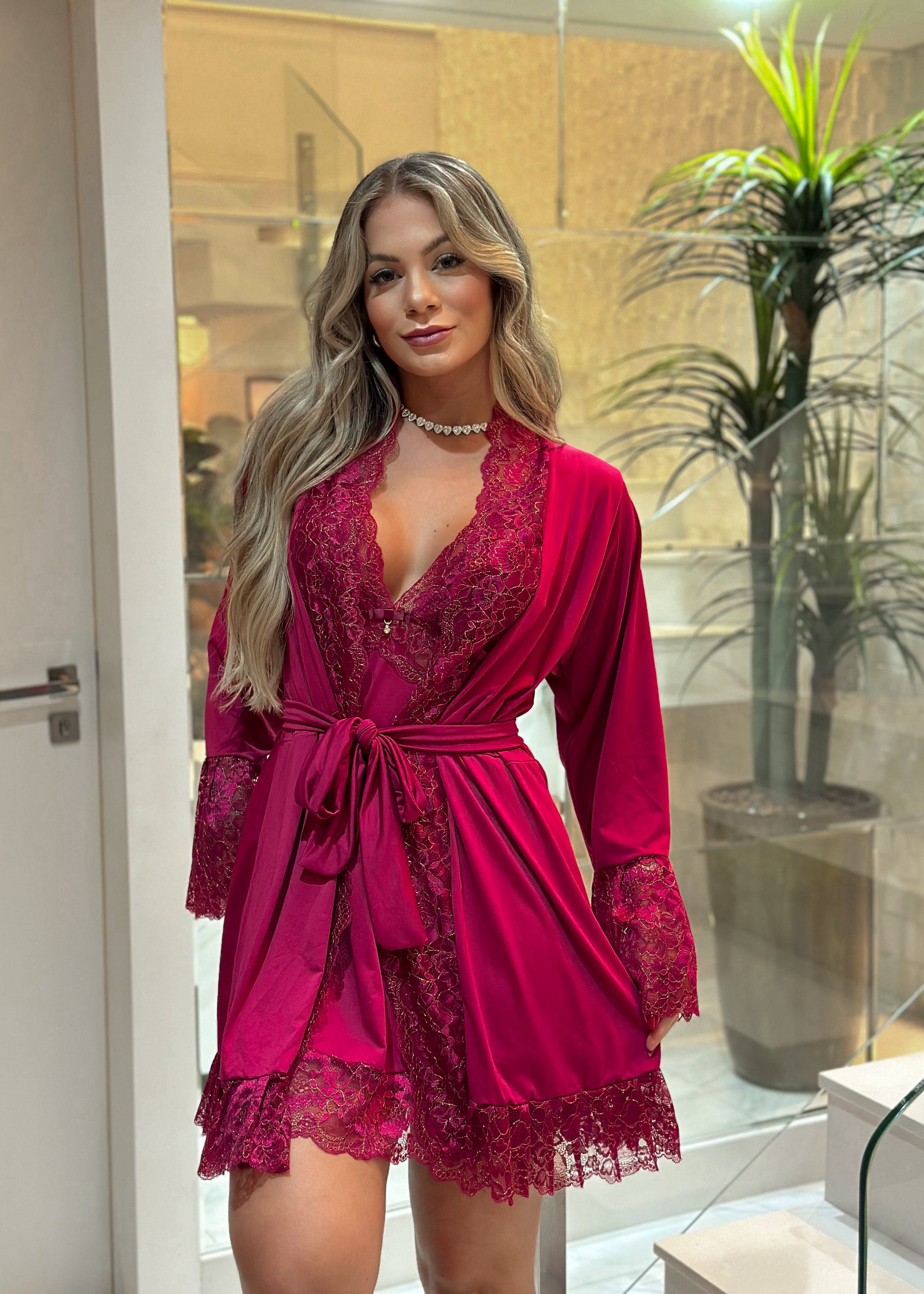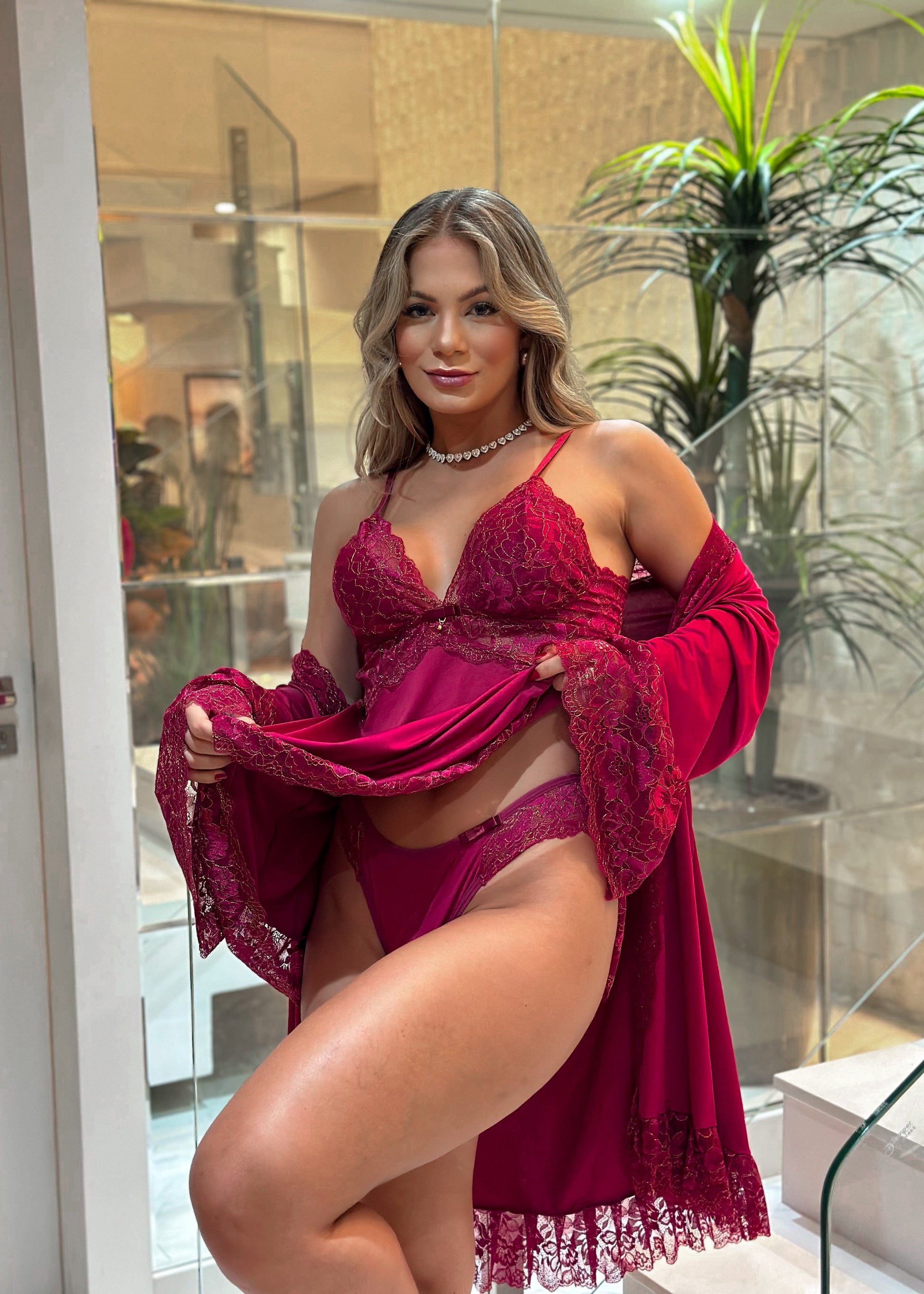 Kit Robe + Conjunto de Camisola + Calcinha - Cerise Royale