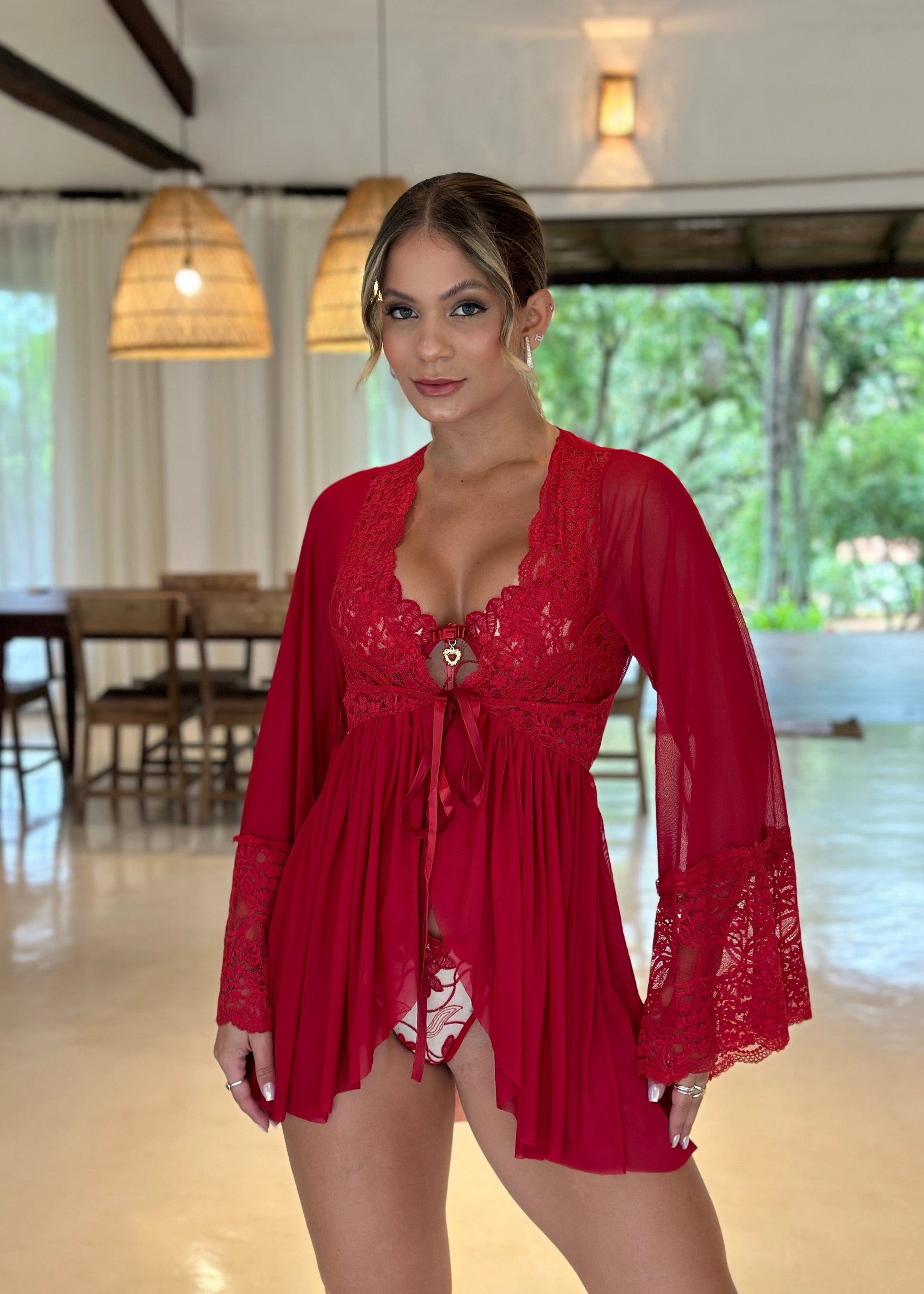 Desperte sua essência mais poderosa com o Kit Rouge de Lune — um encontro entre o mistério do tule transparente e a sofisticação da renda vermelha com marfim. Ideal para noites especiais ou momentos em que você deseja se sentir única, essa composição entrega charme, presença e sensualidade com leveza.